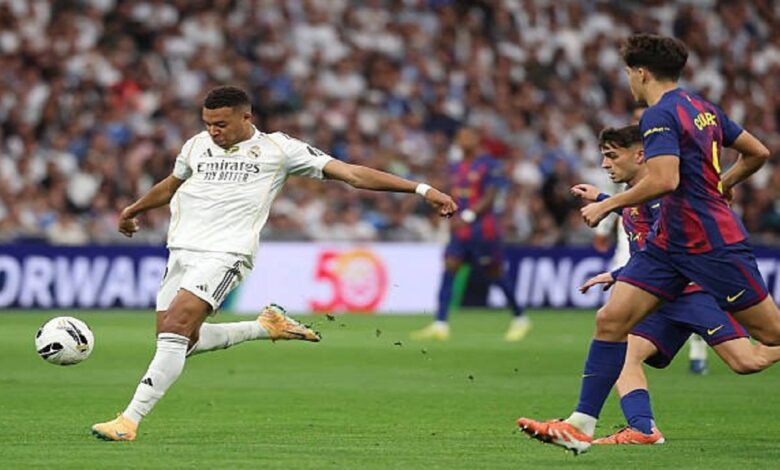 رئال بازی را توفانی آغاز کرد و در دقیقه ۲ لامین یامال پای وینسیوس جونیور را در محوطه جریمه زد و داور ابتدا پنالتی اعلام کرد، اما پس از بازبینی صحنه، پنالتی را پس گرفت تا بارسا شانس بزرگی در ابتدای مسابقه بیاورد. ۱۰ دقیقه بعد امباپه موفق شد دروازه رئال را باز کند، اما این بار هم شانس با بارسا یار بود و گل به دلیل آفساید مردود اعلام شد.