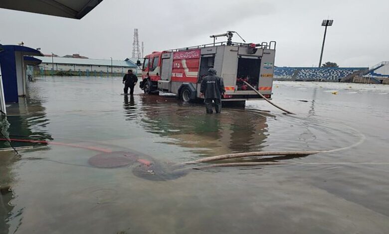 لغو بازی ملوان – خیبر به دلیل آب گرفتگی ورزشگاه سیروس قایقران